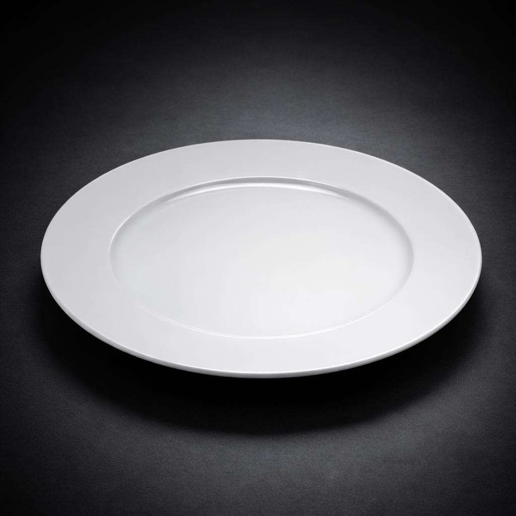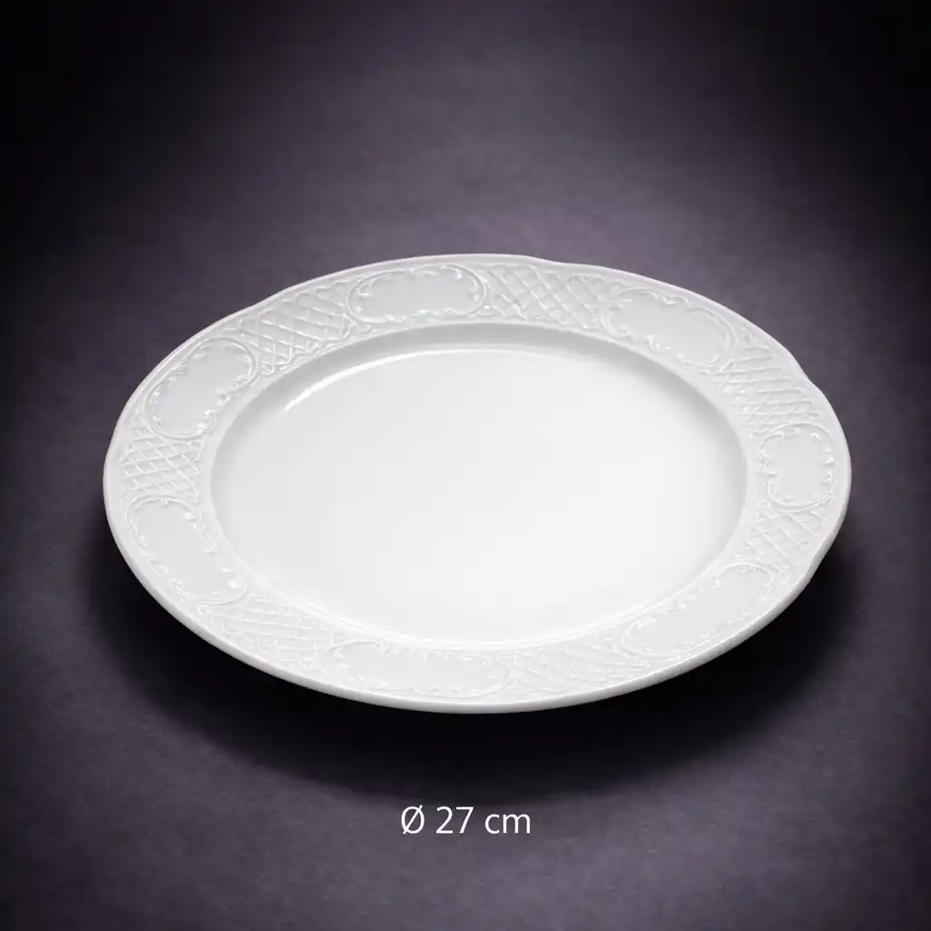 Plato llano modelo Agusta de porcelana blanco con labrado 27 cm