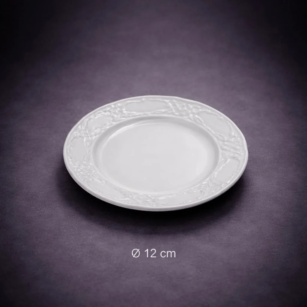 Plato llano para el pan modelo Agusta de porcelana blanco con labrado 12 cm