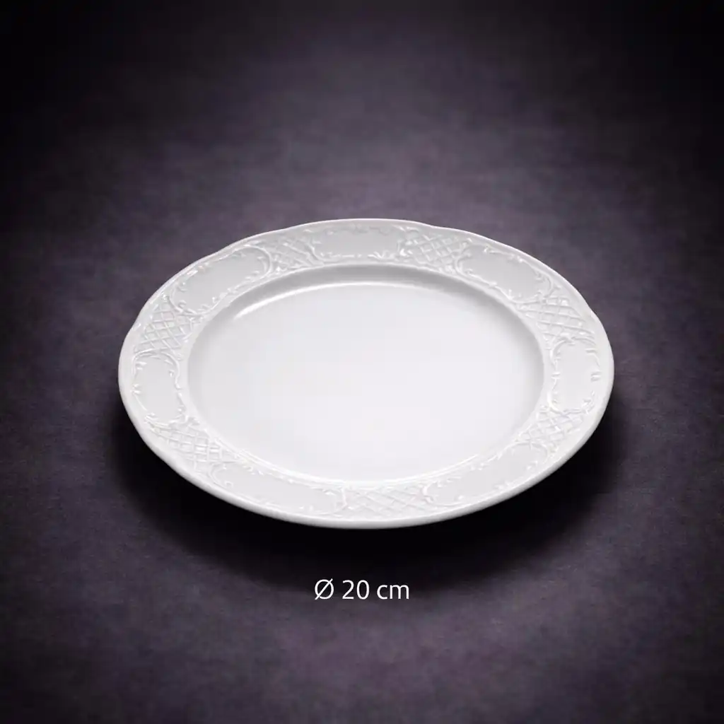 Plato llano modelo Agusta de postre de porcelana blanco con labrado 20 cm